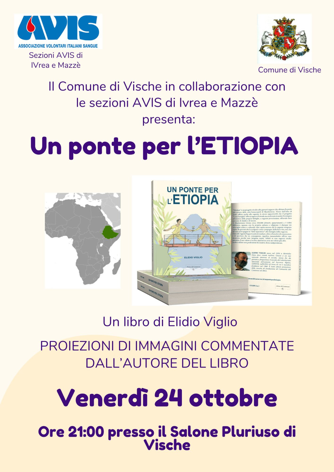 Presentazione del libro "Un ponte per l'Etiopia" scritto da Elidio Viglio, venerdì 24 ottobre ore 21:00 presso il Salone Pluriuso di Vische